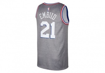 NIKE NBA PHILADELPHIA 76ERS JOEL EMBIID SWINGMAN JERSEY DARK GREY HEATHER